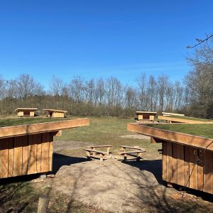 Syd for Camp Them er der i årene 2023 og 2024 plantet hundredtusindvis af nye træer – det betyder, at Camp Them inden for en overskuelig årrække vil blive direkte integreret i disse